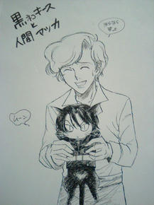 黒猫の下腹の部分を真っ黒にするか白い三角毛をつけるかでも迷い中。